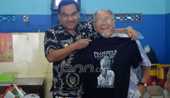 元県会議員でもあるアリフ・ロフマン副知事は押川教授にプラムディヤのTシャツを手渡した。「押川典昭氏のブロラ訪問を歓迎している。これはプラムが世界的に知られた人物であることを意味するからだ。今回の訪問がブロラにとってもよい影響を与えてくれることを願っている」と同副知事は話した。